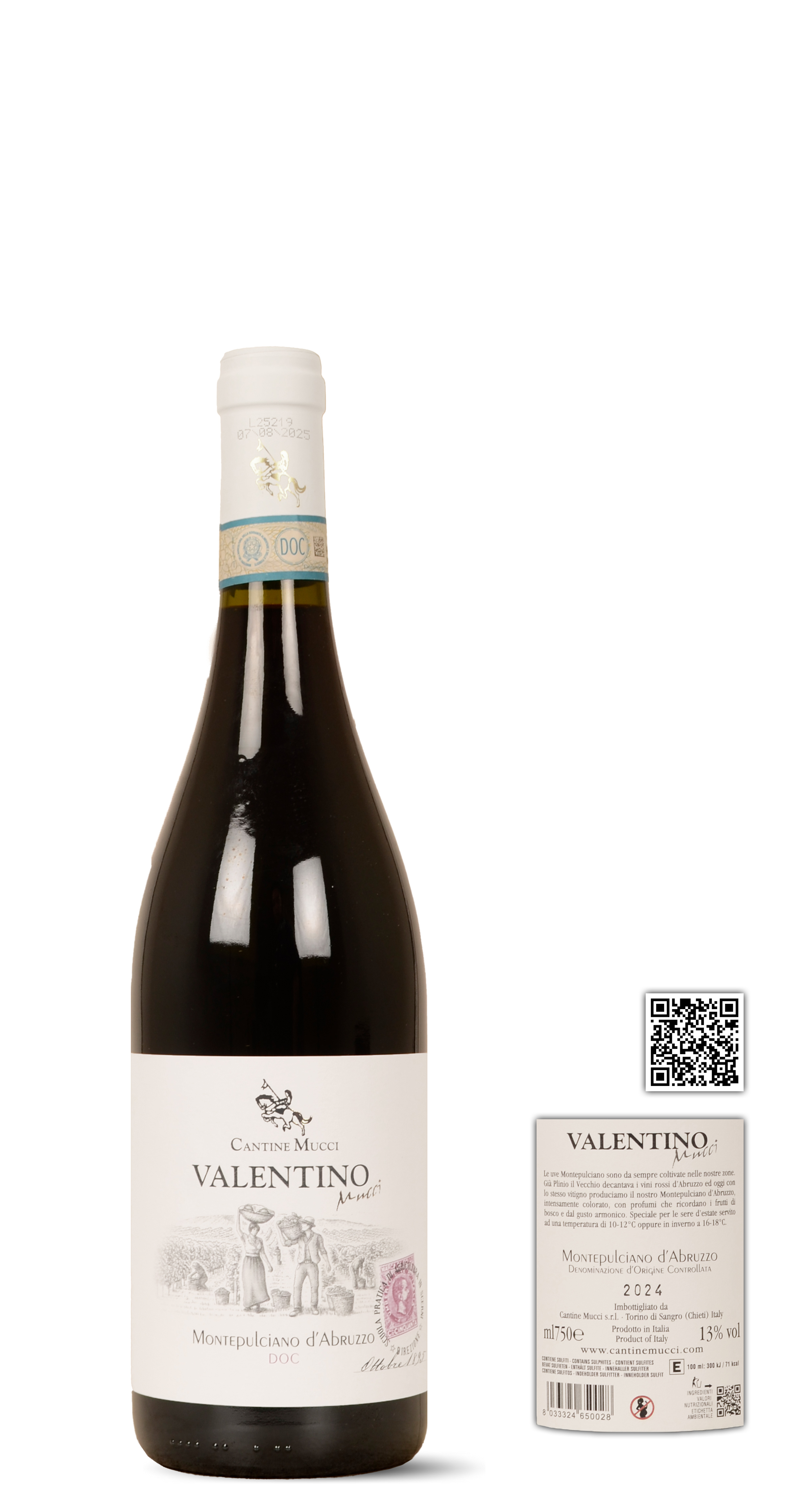 100% montepulciano. Met de hand geplukte druiven. Maceratie van 12 dagen op de pelletjes. Na zachte persing fermentatie onder gecontroleerde temperatuur in inox kuipen waarna botteling. Korte rust op de fles alvorens op de markt te brengen.