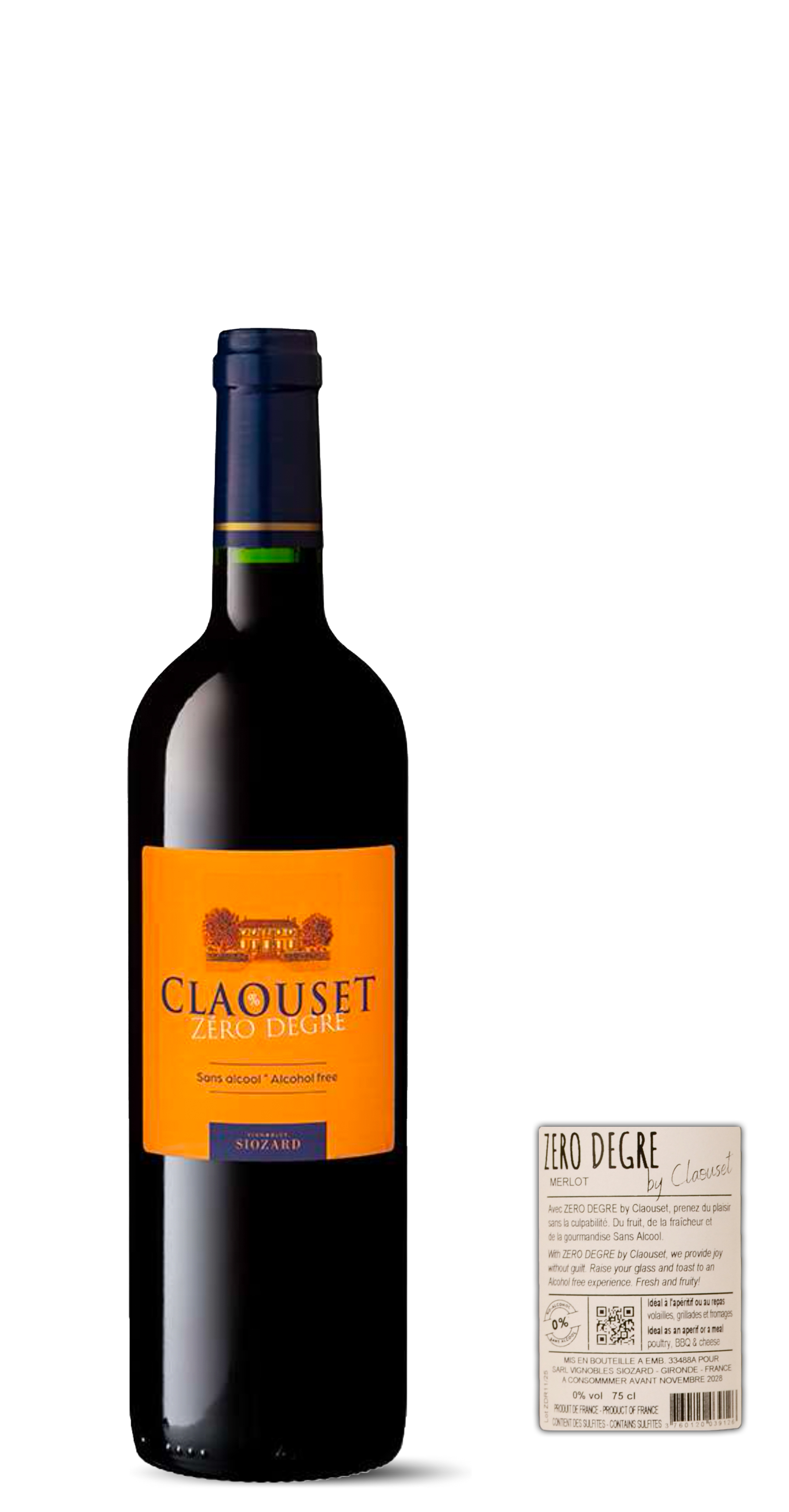 100% Merlot. Na een klassieke fermentatie op lage temperatuur worden de wijnen gedealcoholiseerd volgens de modernste technieken. Water verdampt normaal op 100° C, Alcohol op 78°. Onder vacuüm kan de verdamping gerealiseerd worden op 35-40°C waardoor de primaire aroma's veel beter bewaart blijven en alcohol wordt gereduceerd tot 0,2%. Verloren aroma's worden terug gerecupereerd en weer in de wijn geïnjecteerd.